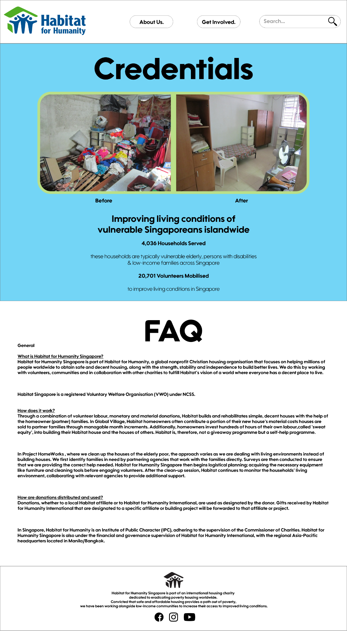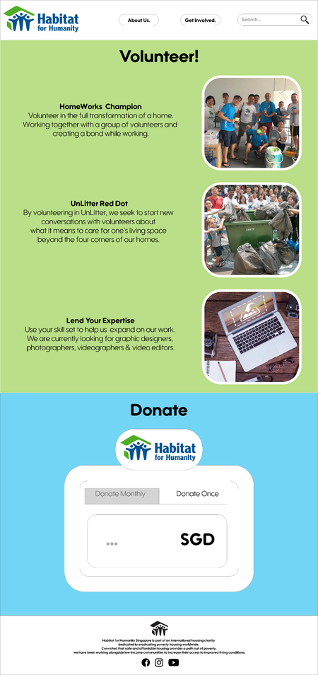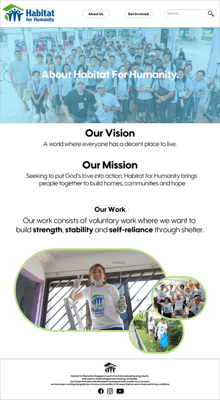 I was tasked to redesign the 'Habitat for Humanity' website to make it look more appealing and concise.